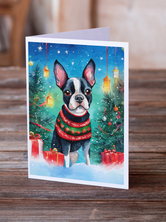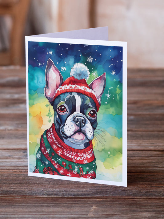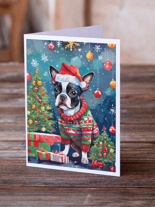 Boston Terrier Cozy Christmas Greeting Cards Pack of 8