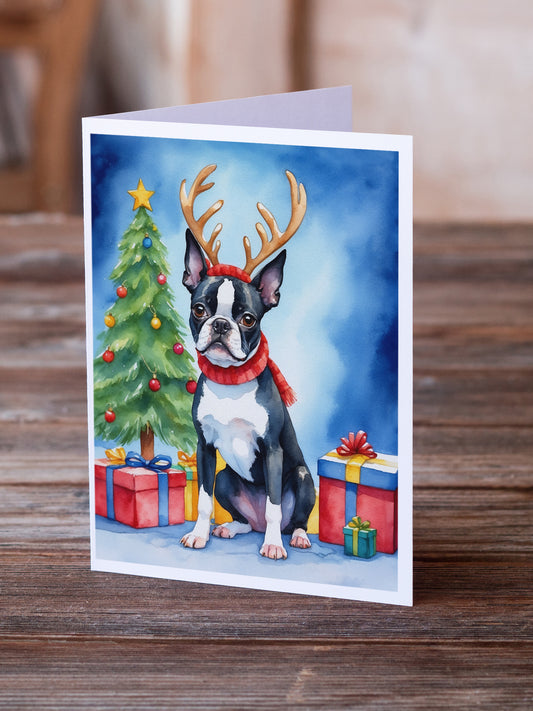 Boston Terrier Christmas Reindeer Greeting Cards Pack of 8