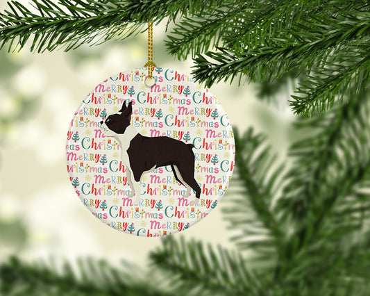Boston Terrier Merry Christmas Ceramic Ornament
