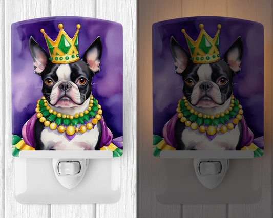 Boston Terrier King of Mardi Gras Ceramic Night Light