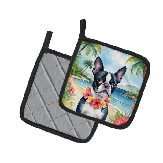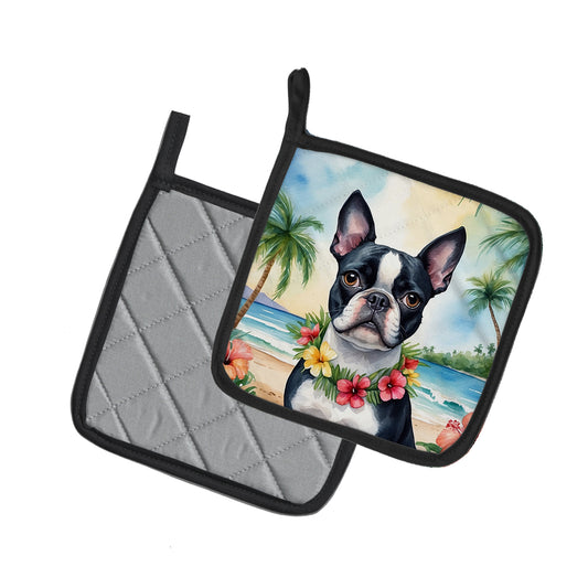 Boston Terrier Luau Pair of Pot Holders