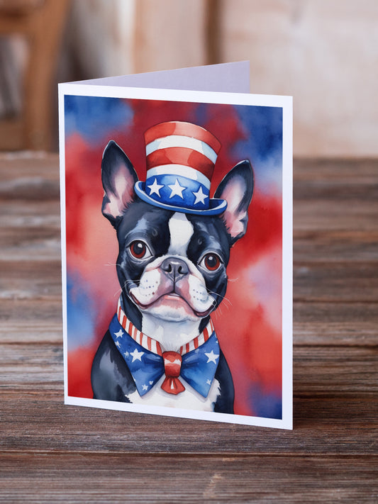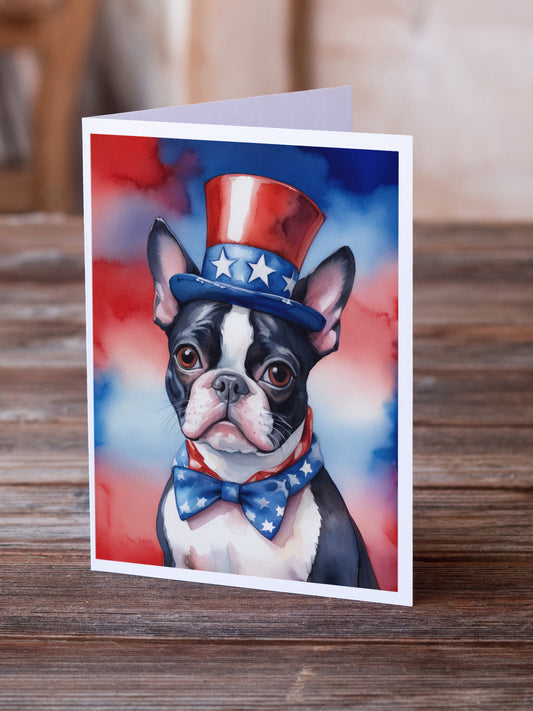 Boston Terrier Patriotic American Greeting Cards Pack of 8