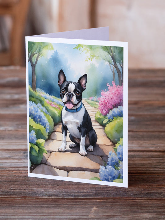 Boston Terrier Spring Path Greeting Cards Pack of 8
