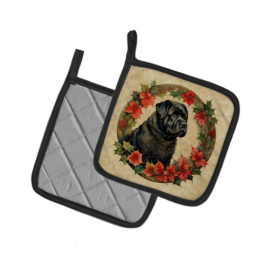 Bouvier des Flandres Christmas Flowers Pair of Pot Holders