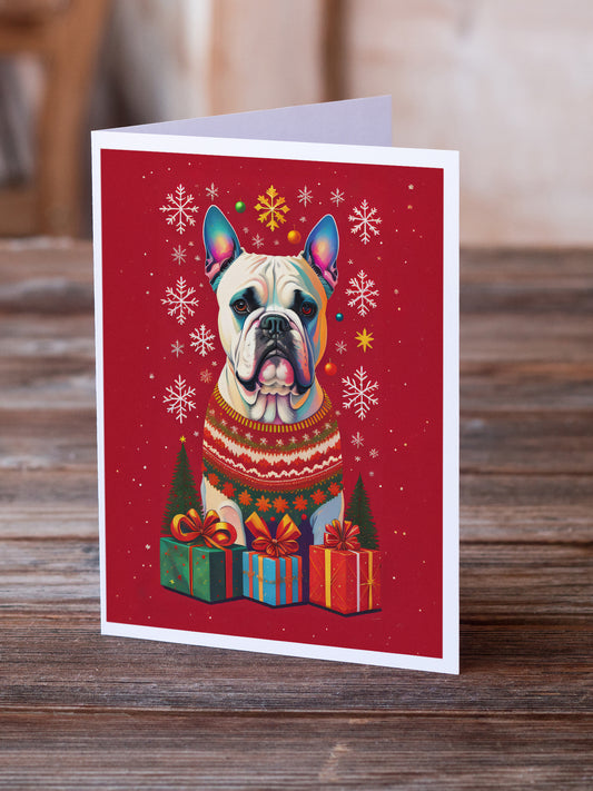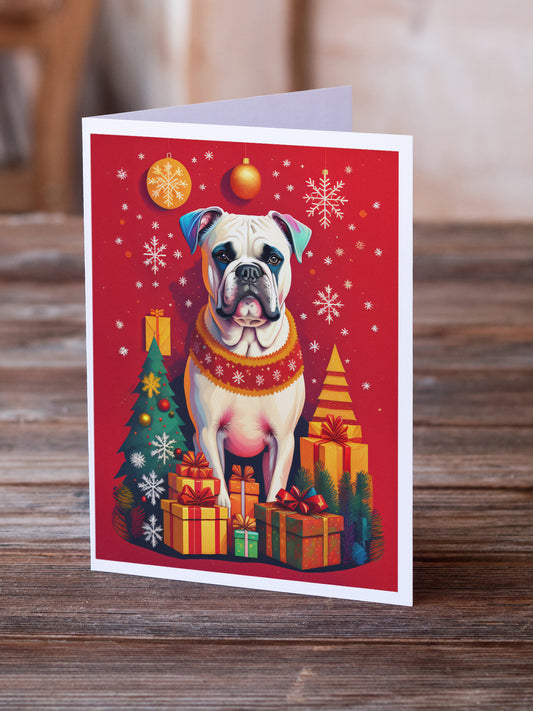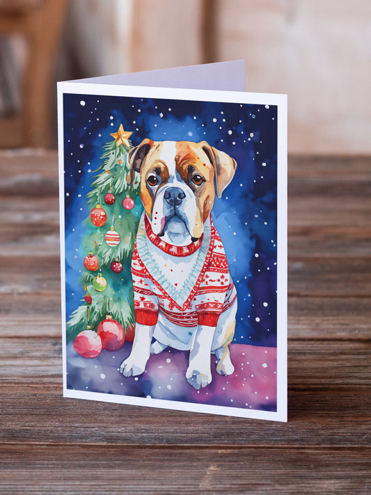 White Boxer Holiday Christmas Greeting Cards Pack of 8