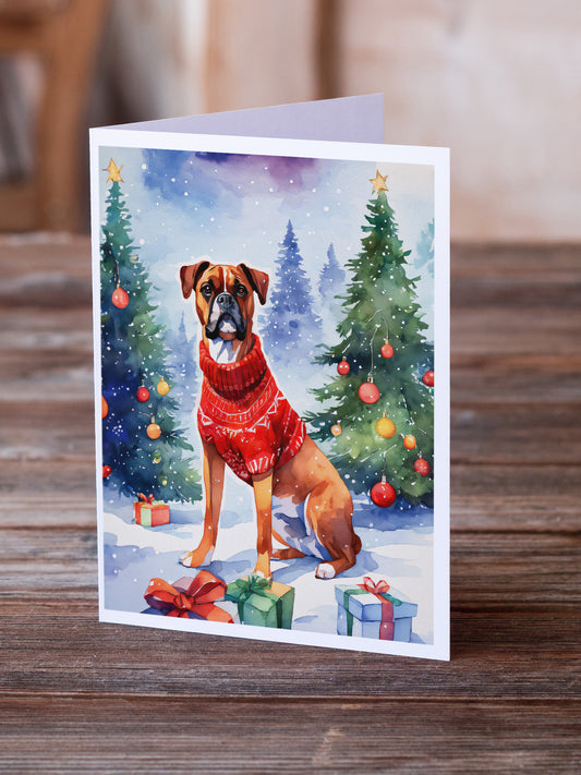 Boxer Cozy Christmas Greeting Cards Pack of 8