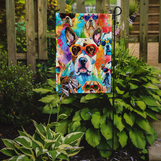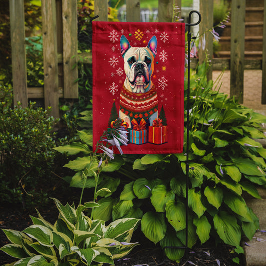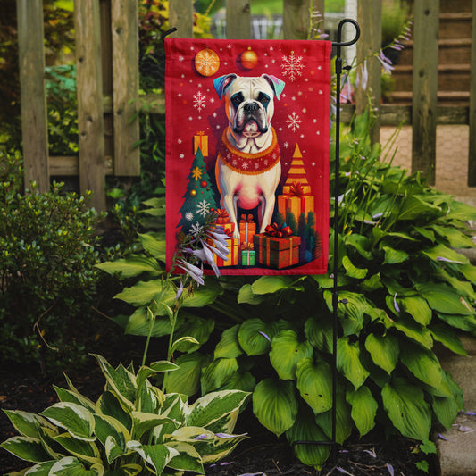 White Boxer Cropped Ears Holiday Christmas Garden Flag
