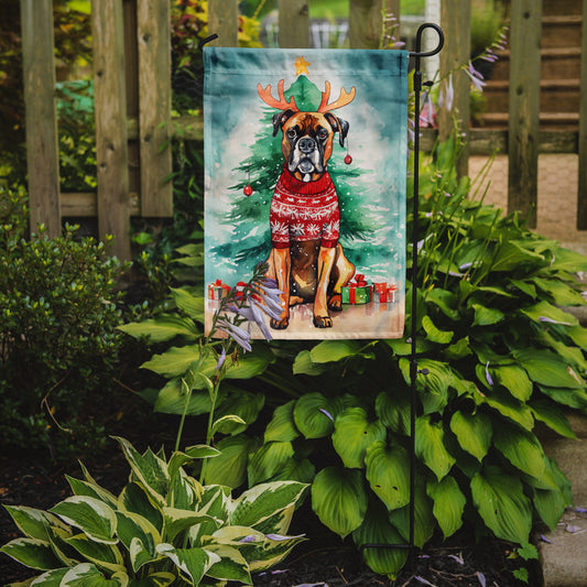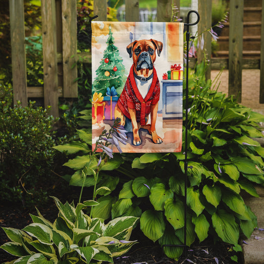 Fawn Boxer Cropped Ears Holiday Christmas Garden Flag