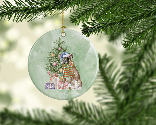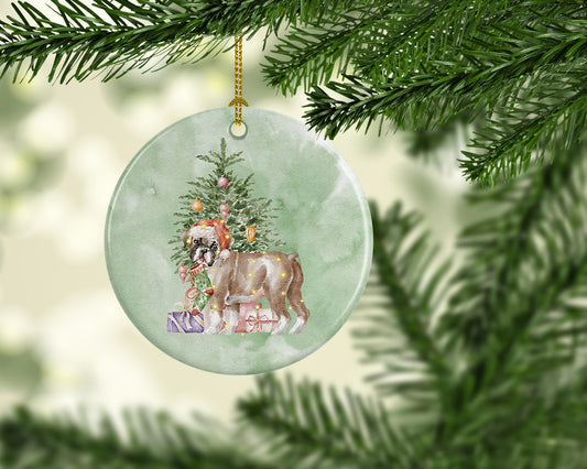 Boxer Christmas Presents and Tree Ceramic Ornament