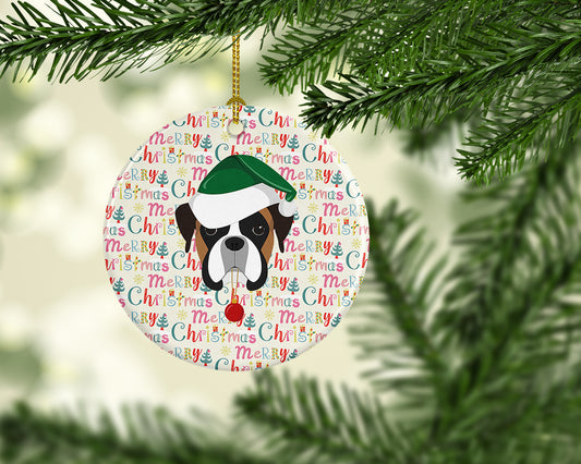 Boxer Puppy #2 Christmas Presents and Tree Ceramic Ornament