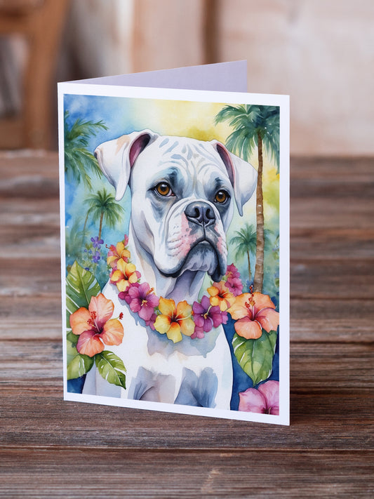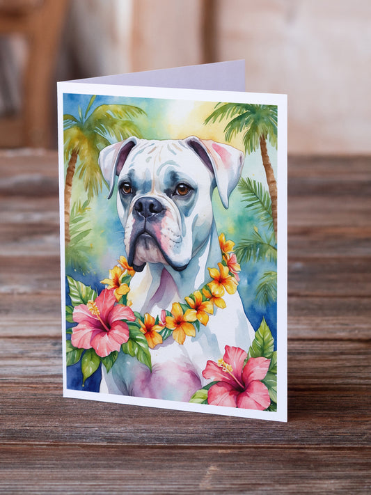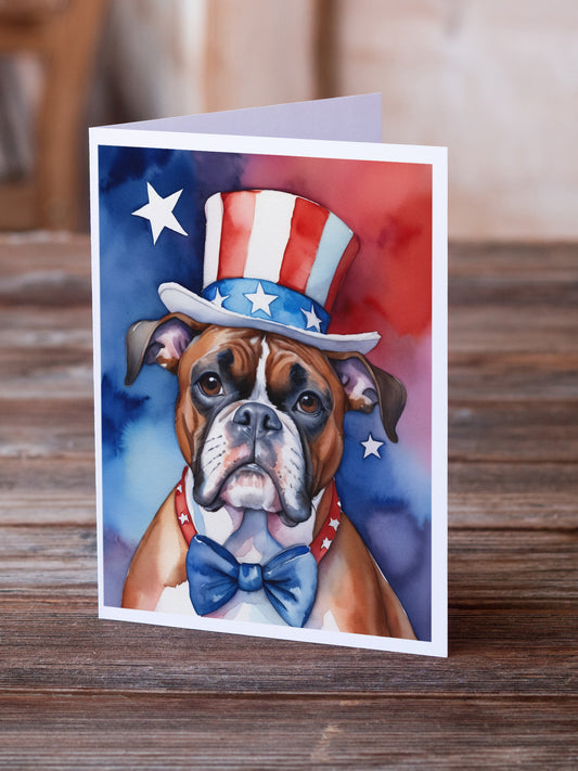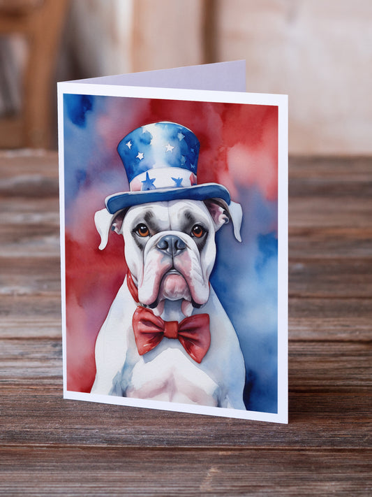 White Boxer Patriotic American Greeting Cards Pack of 8