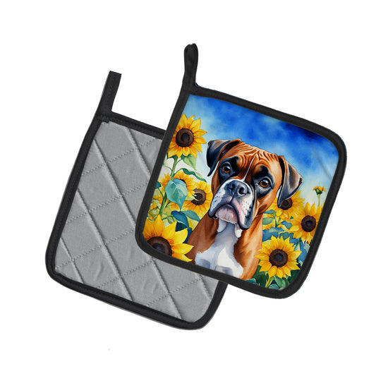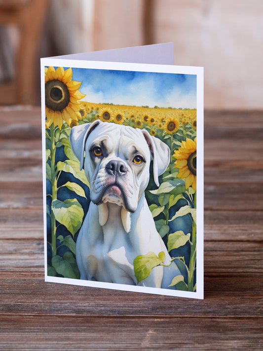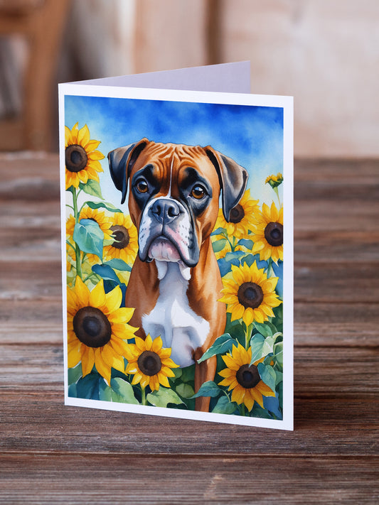 Boxer in Sunflowers Greeting Cards Pack of 8