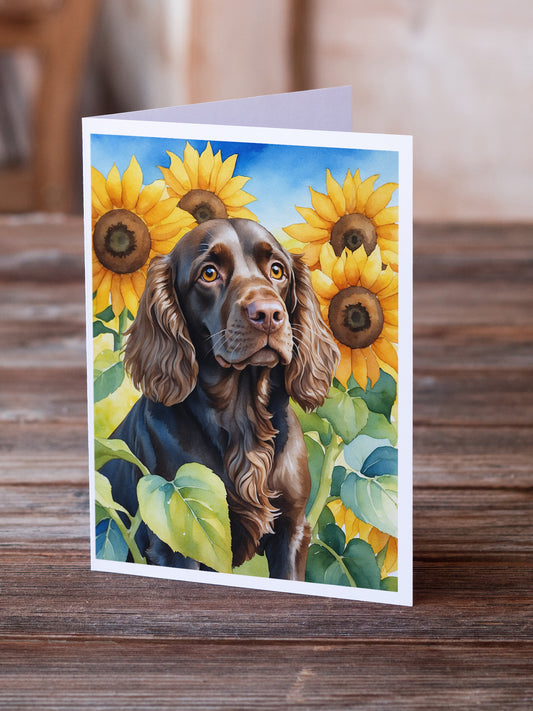 Boykin Spaniel in Sunflowers Greeting Cards Pack of 8