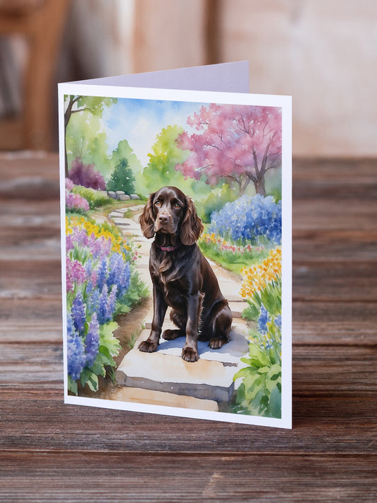 Boykin Spaniel Spring Path Greeting Cards Pack of 8