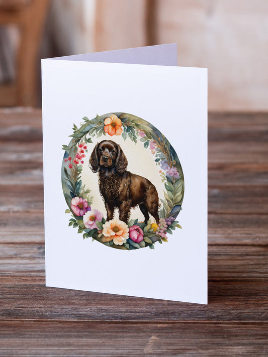 Boykin Spaniel and Flowers Greeting Cards and Envelopes Pack of 8