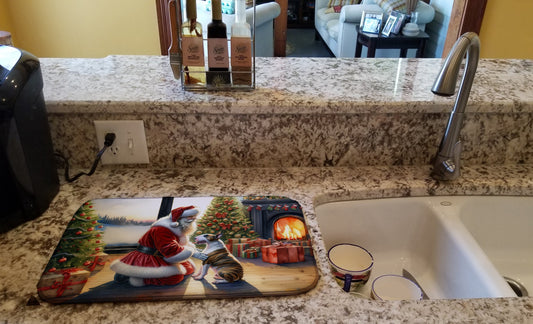 English Bull Terrier and Santa Claus Dish Drying Mat