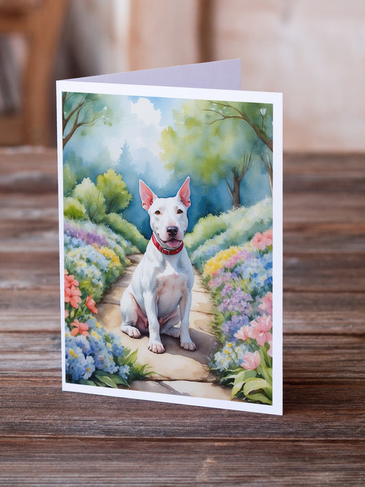 Bull Terrier Spring Path Greeting Cards Pack of 8