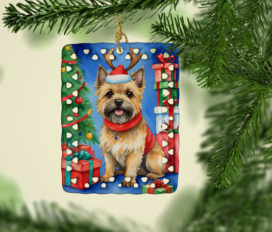 Cairn Terrier Christmas Reindeer Porcelain Ornament