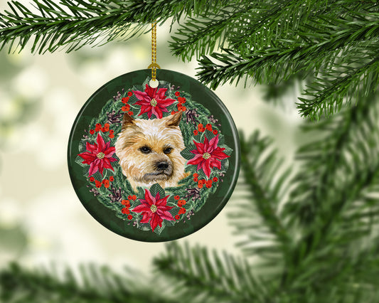 Cairn Terrier Poinsetta Wreath Ceramic Ornament