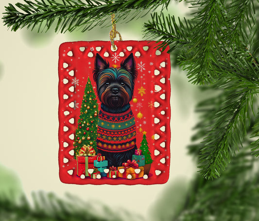 Black Cairn Terrier Holiday Christmas Porcelain Ornament