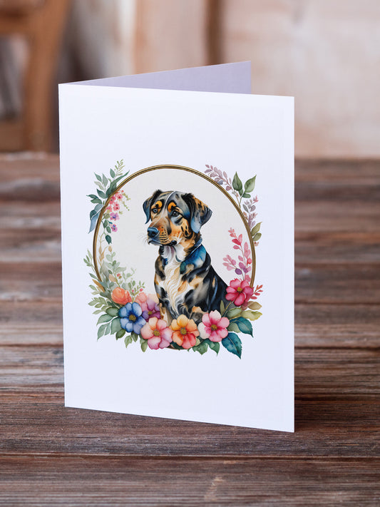 Catahoula Leopard Dog and Flowers Greeting Cards and Envelopes Pack of 8