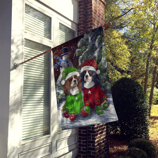 Cavalier Spaniel Snowman Christmas Flag Canvas House Size PPP3067CHF