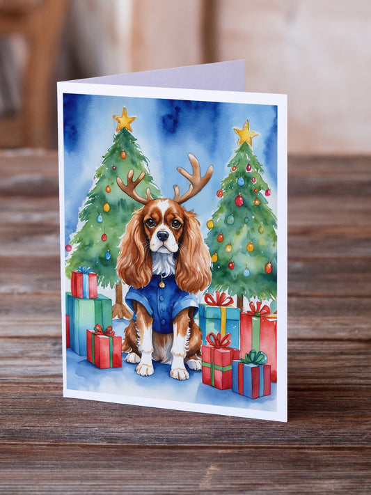 Cavalier Spaniel Christmas Reindeer Greeting Cards Pack of 8