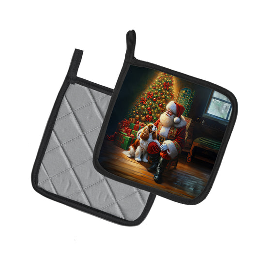 Cavalier Spaniel and Santa Claus Pair of Pot Holders
