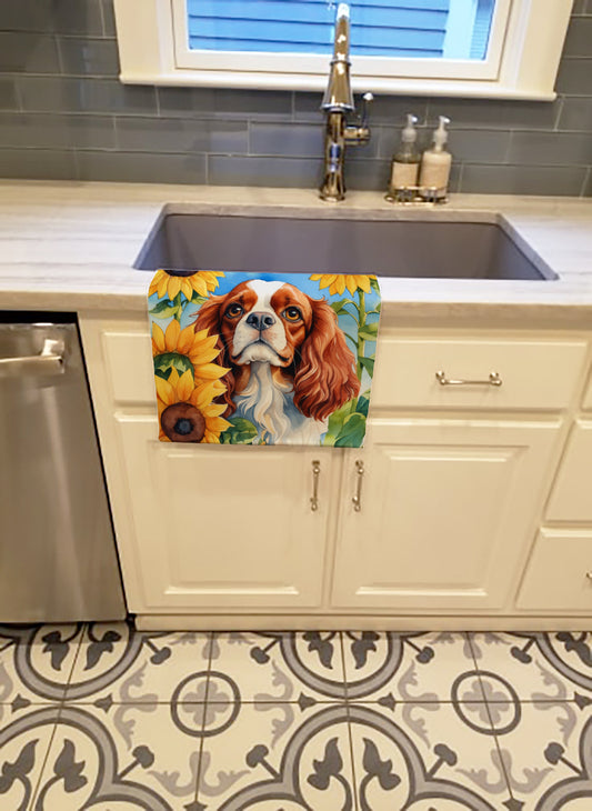 Cavalier Spaniel in Sunflowers Kitchen Towel