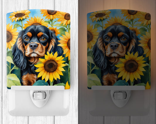 Cavalier Spaniel in Sunflowers Ceramic Night Light