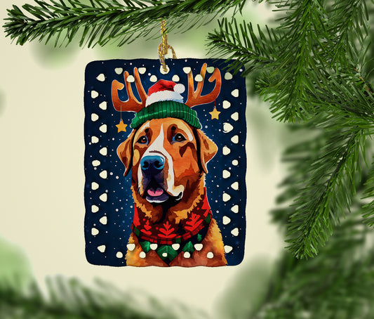 Chesapeake Bay Retriever Christmas Reindeer Porcelain Ornament