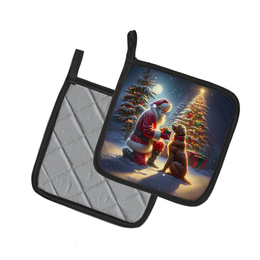 Chesapeake Bay Retriever and Santa Claus Pair of Pot Holders