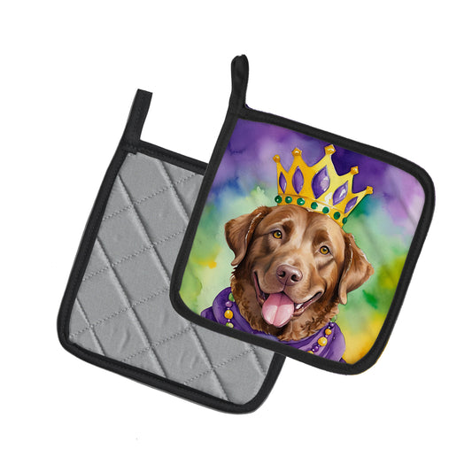Chesapeake Bay Retriever King of Mardi Gras Pair of Pot Holders
