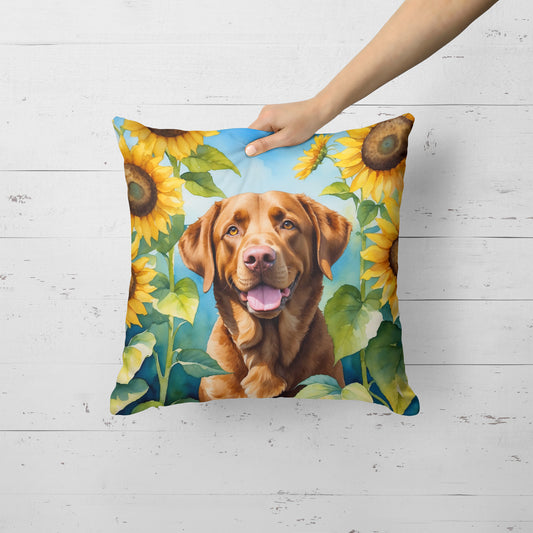 Chesapeake Bay Retriever in Sunflowers Throw Pillow