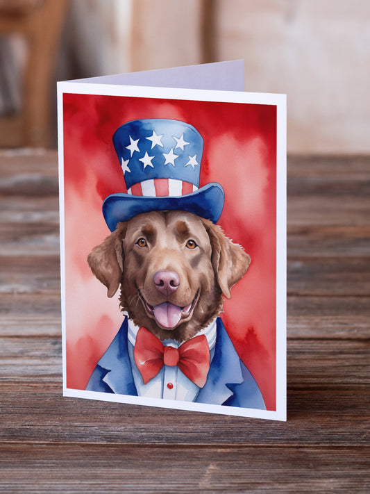 Chesapeake Bay Retriever Patriotic American Greeting Cards Pack of 8