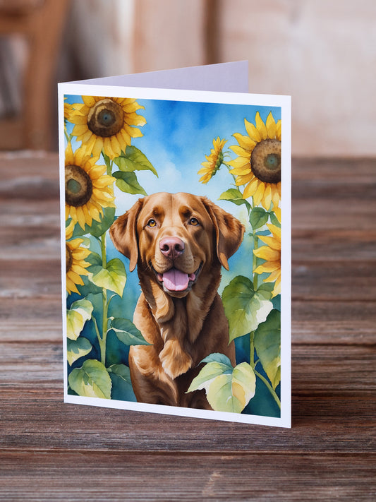 Chesapeake Bay Retriever in Sunflowers Greeting Cards Pack of 8