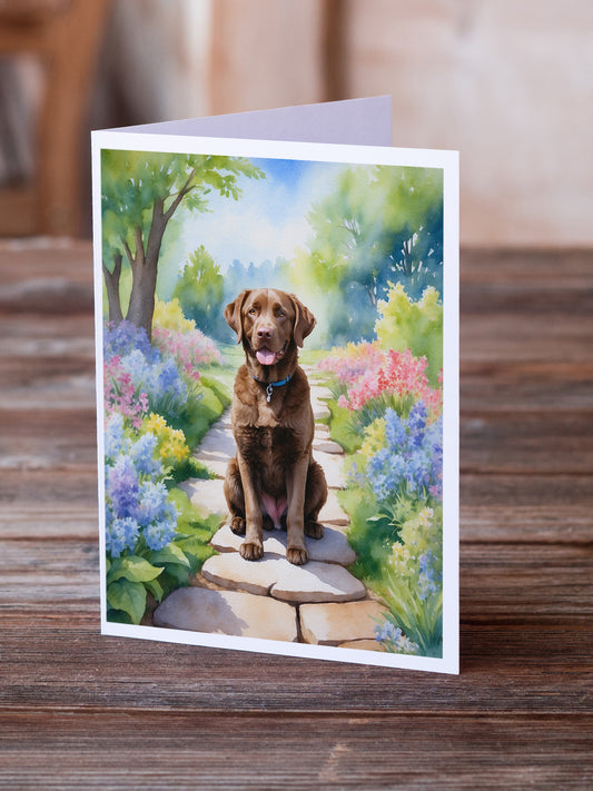 Chesapeake Bay Retriever Spring Path Greeting Cards Pack of 8