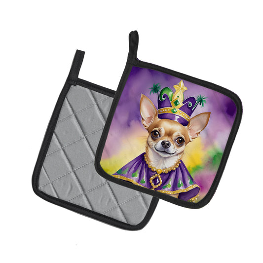 Chihuahua King of Mardi Gras Pair of Pot Holders