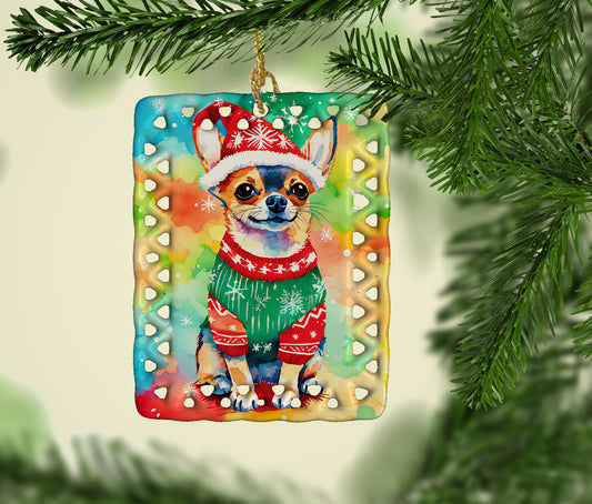 Chihuahua Chocolate and White #2 Christmas Ceramic Ornament