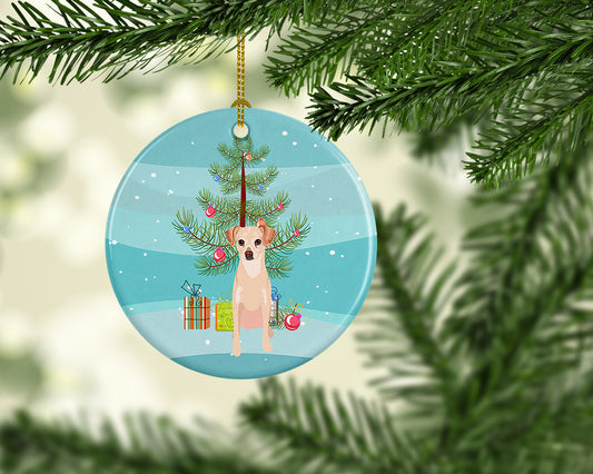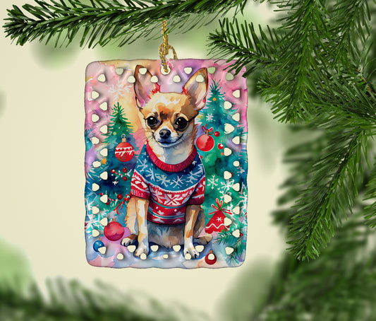 Chihuahua Gold and White Christmas Ceramic Ornament