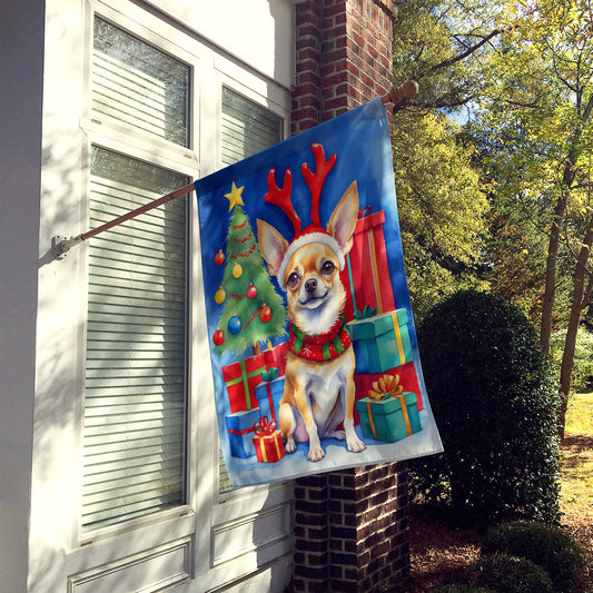 Black and Tan Chihuahua Christmas Reindeer House Flag