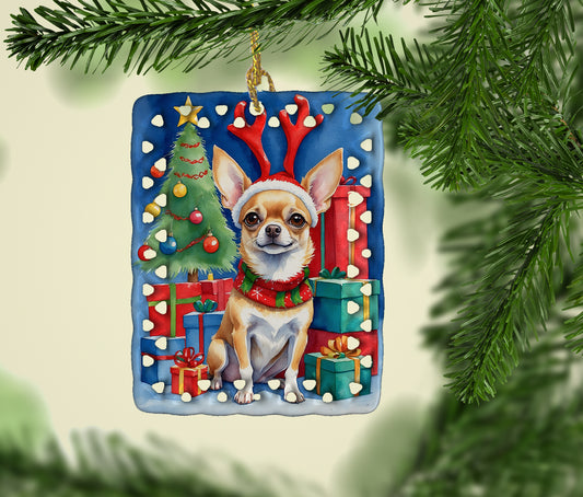 Chihuahua Christmas Reindeer Porcelain Ornament