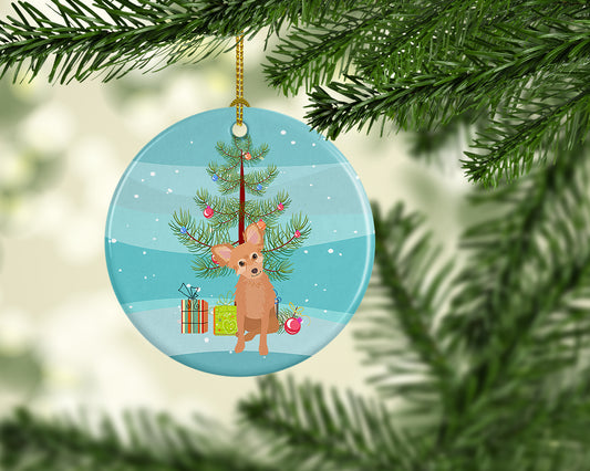 Chihuahua Silver and Tan Christmas Ceramic Ornament