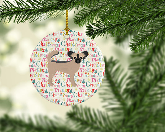 Longhair Chihuahua Merry Christmas Ceramic Ornament