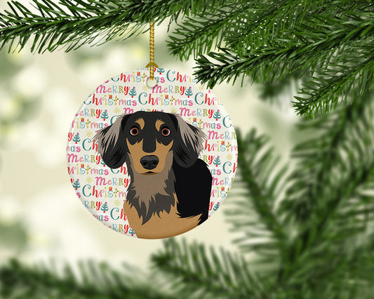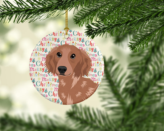 Longhair Chihuahua #2 Merry Christmas Ceramic Ornament