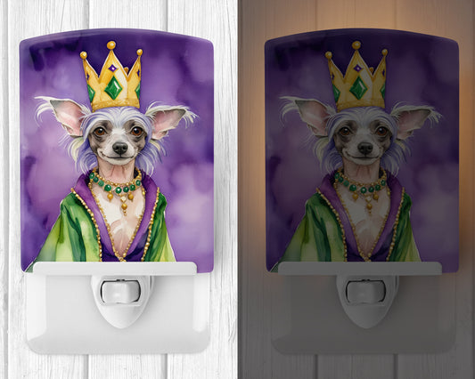 Chinese Crested King of Mardi Gras Ceramic Night Light