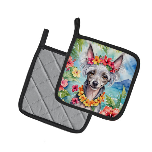 Chinese Crested Luau Pair of Pot Holders