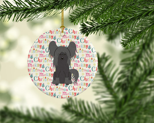 Merry Christmas Chinese Crested Black Ceramic Ornament