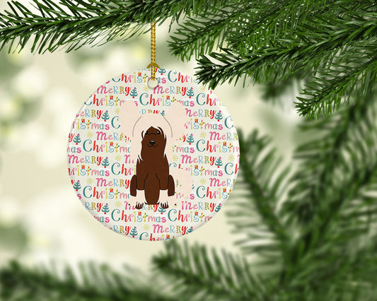 Merry Christmas Chinese Crested Cream Ceramic Ornament