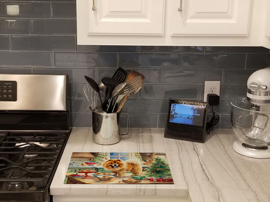 Chow Chow Cozy Christmas Glass Cutting Board